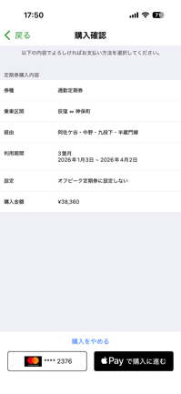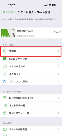 Apple PayのSuicaは定期の購入もできます。