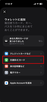 2.「交通系ICカード」を選びます。