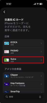3.「Suica」を選びます。