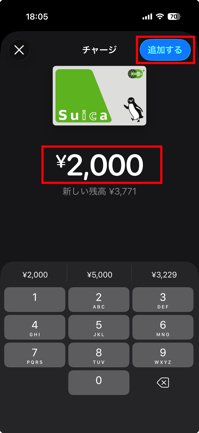 3.チャージしたい金額を選択後、「追加する」を選択します。例として2000円を入力しています。