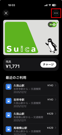 1.Apple WalletアプリでSuicaをタップ。