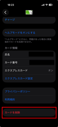 4.「カードを削除」をタップします。