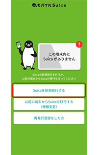 1.「Suicaを新規発行する」をタップ。