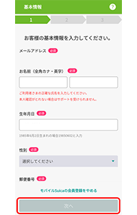 My Suica (記名式) 、Suica 定期券を追加する場合は、生年月日の入力が必要になります。