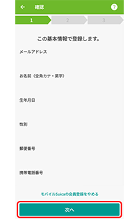 5.入力した内容で間違いなければ「次へ」をタップ。