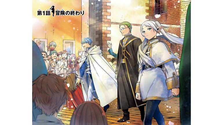 人間である勇者ヒンメルたちにとって長い旅であり、エルフで魔法使いのフリーレンにとっては短い旅であった魔王討伐の10年を終え、誇らしく王都を歩く。〝後日譚(アフター)ファンタジー〟を象徴する原作冒頭の扉絵だ。