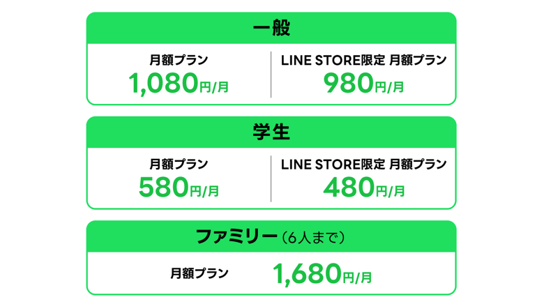 LINE STORE限定の月額プランでは、それぞれ一般が980円/月、学生が480円/月で利用できます。