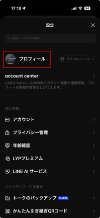 1.「LINE」アプリの「設定」を開き「プロフィール」をタップ