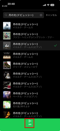 設定時にLINE MUSICアプリ内の「編集」(ハサミの形)アイコンをタップすることで、BGMにしたい曲のパートを調整して保存することが可能です。