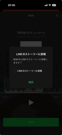 5.「LINEのストーリーに投稿」するかチェックして、「確認」をタップ