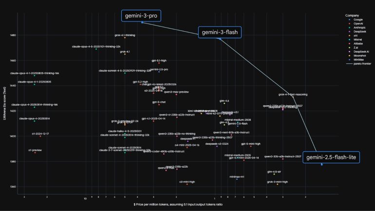 Gemini 3 Flash は、最先端の推論能力やマルチモーダル機能に加え、極めて高い効率性を備えるよう設計されており、品質とコスト、そしてスピードのバランスにおいて、これまでの限界(パレート境界)を新たな領域へと拡大している。
