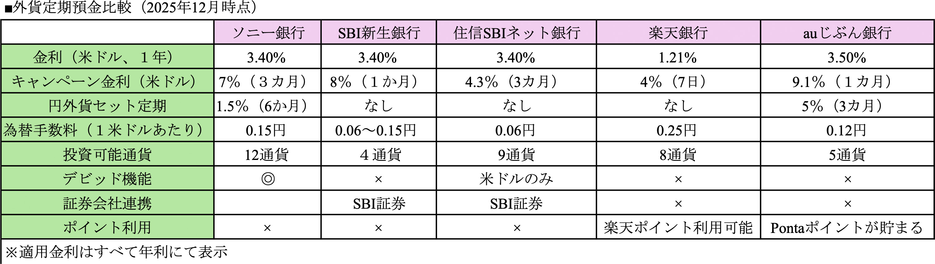 現在、外貨の金利が高い水準にある。12月の米FRBではFF金利が0.25%引き下げられ3.5~3.75%となったものの、まだまだ高い水準にあり、今後はしばらく利下げが打ち止めとなる見通しだ。