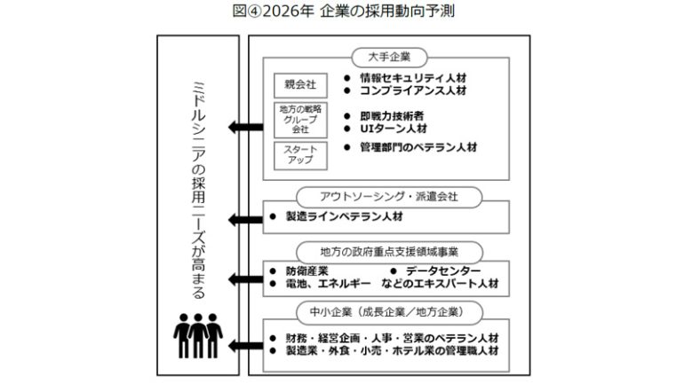 防衛産業、電池・エネルギー、データセンターなど、政府の重点支援領域においても、ミドルシニアの採用ニーズの高まりが予想される。