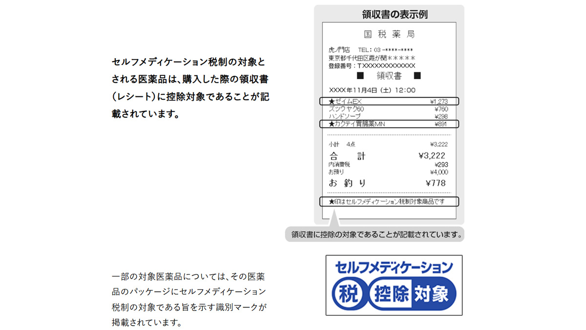 風邪薬や頭痛薬、湿布薬など、ドラッグストアで購入したレシートに「セルフメディケーション税制対象」のマークがないか、絶対に確認してほしい。