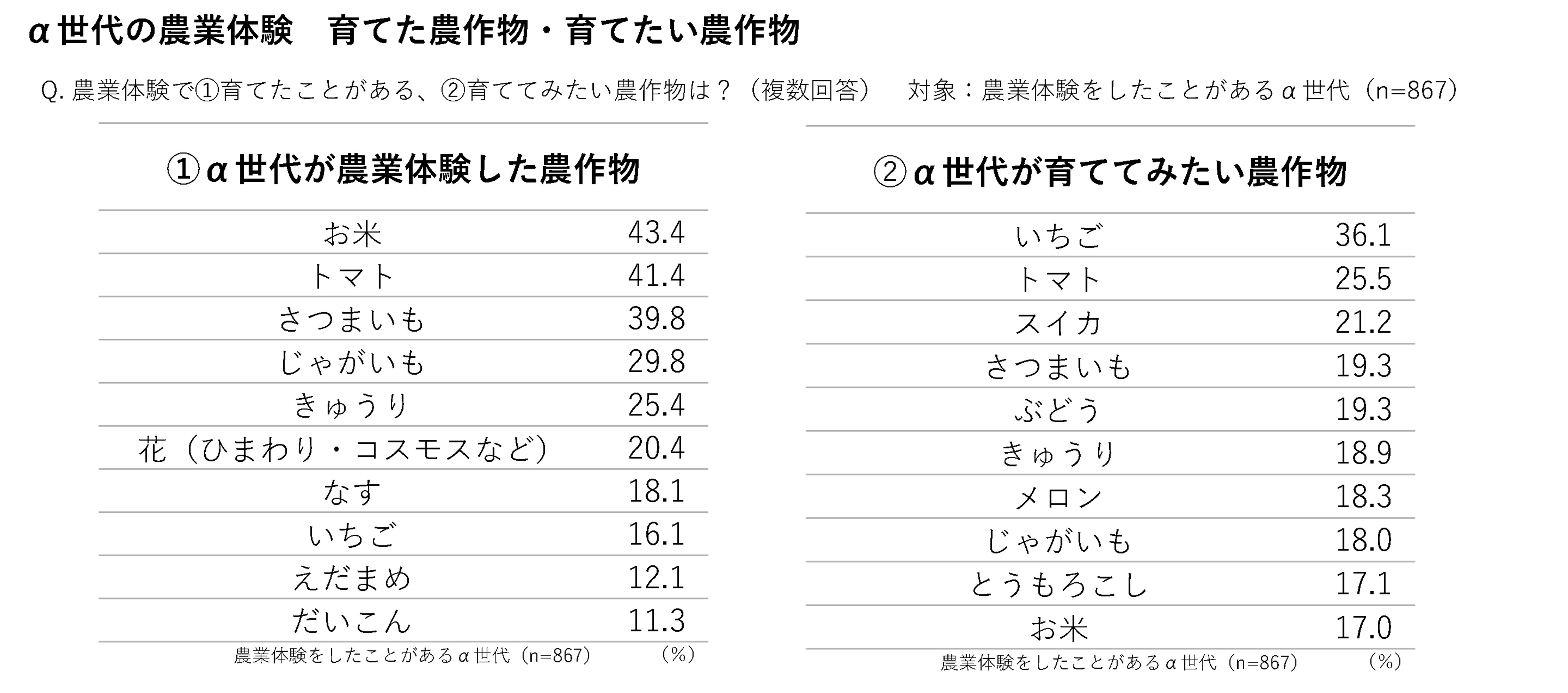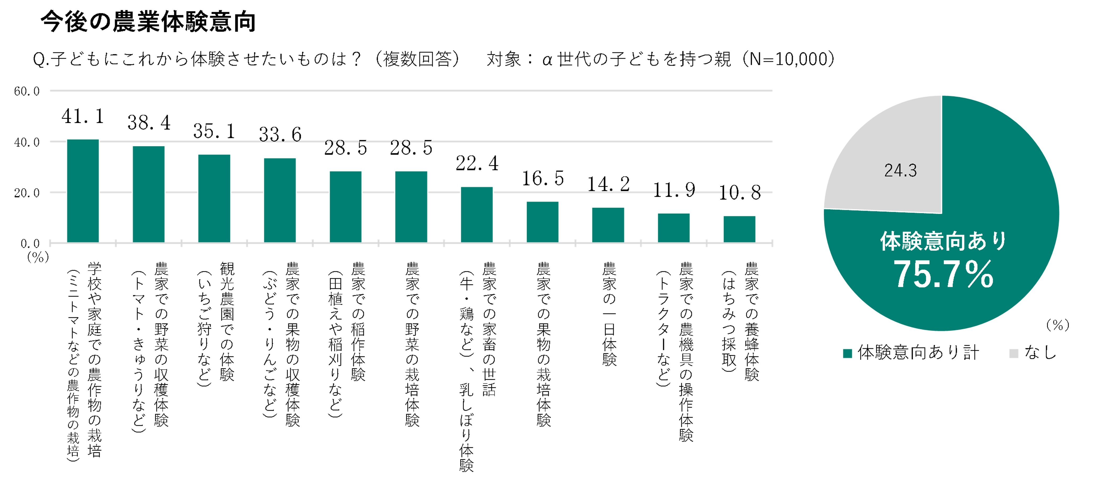 JA共済連はこのほど、農業体験がもたらす教育効果に着目し、α世代の子どもを持つ親とα世代の子ども本人を対象とした、農業体験への意向や期待される効果、身についたこと等を調べる「α世代の農業体験と教育効果に関する調査」を実施し、その結果を発表した。
