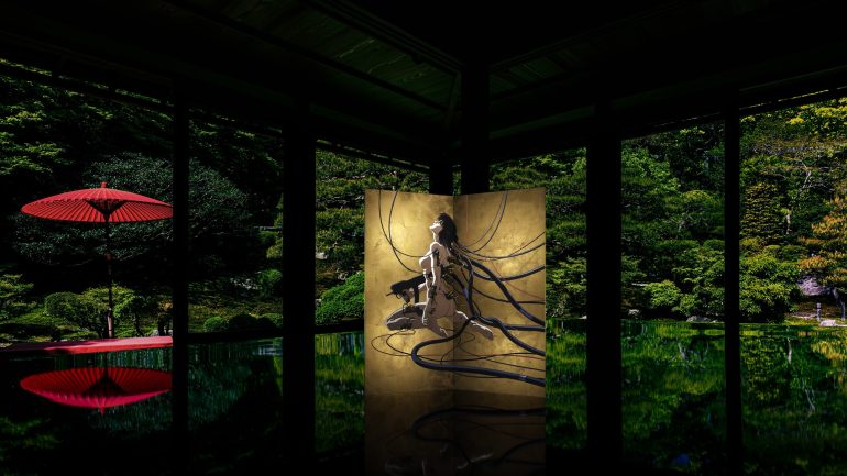 「TechnoByobu」は、最先端のヴィジュアルを、500年以上の伝統を誇る箔工芸を用いた屏風として再構築する新世代のアートピース。職人たちの手仕事により屏風上に色鮮やかに描かれた作品は注目を集め、YMO(イエロー・マジック・オーケストラ)のアルバムアートワークをモチーフにした初作「TB-01:Electronic Fan Girl」は、大きな話題となった。