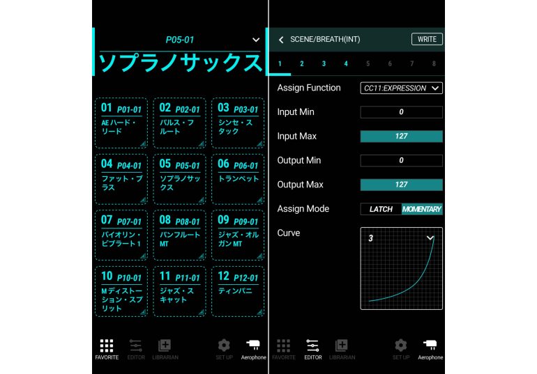 最上位モデルの「AE-30」とスタンダードモデルの「AE-20」では、専用アプリ「Aerophone Pro Editor」が使用可能だ。このアプリにはいくつかの機能があるが、最も使われているのは音色の選択機能である。寺田氏はその理由を説明する。
