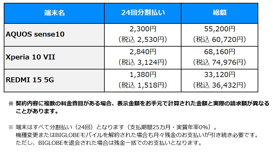 ビッグローブは、モバイルサービス「BIGLOBEモバイル」において、シャープ製スマートフォン「AQUOS sense10」、ソニー製スマートフォン「Xperia 10 VII」、Xiaomi製スマートフォン「REDMI 15 5G」の提供を開始した。