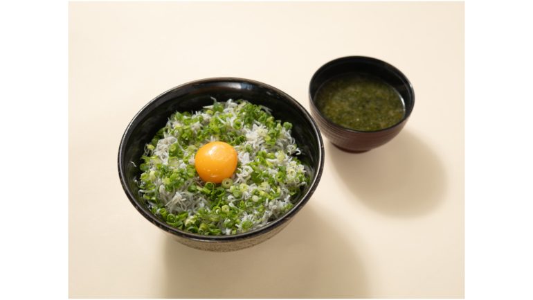 温かいご飯にたっぷりのせたふわふわの「しらす」は、柔らかな口当たりでご飯が進む。磯の風味豊かな「あおさ」のお味噌汁と合わせていただく。