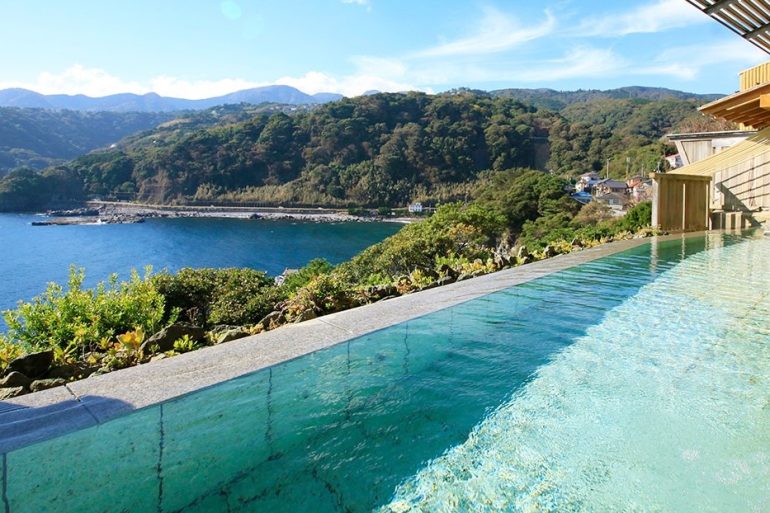 海と空に溶け込む圧倒的な開放感の「展望大浴場」と伊豆の山海を五感で味わう「四季折々の美食」