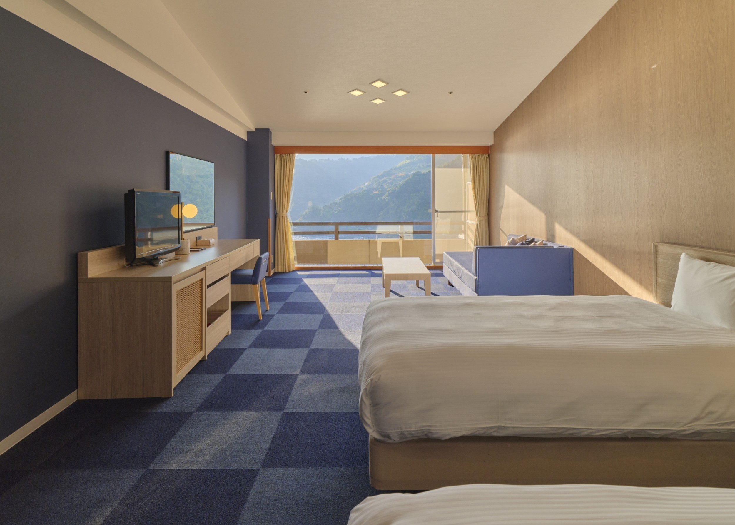 カトープレジャーグループは、赤沢温泉郷敷地内に位置する、宿泊施設「赤沢温泉ホテル」の大規模リニューアル工事を終え、客室やロビーラウンジを新しいデザインに刷新した。太平洋を望む快適な滞在を楽しめる施設の詳細を紹介しよう。