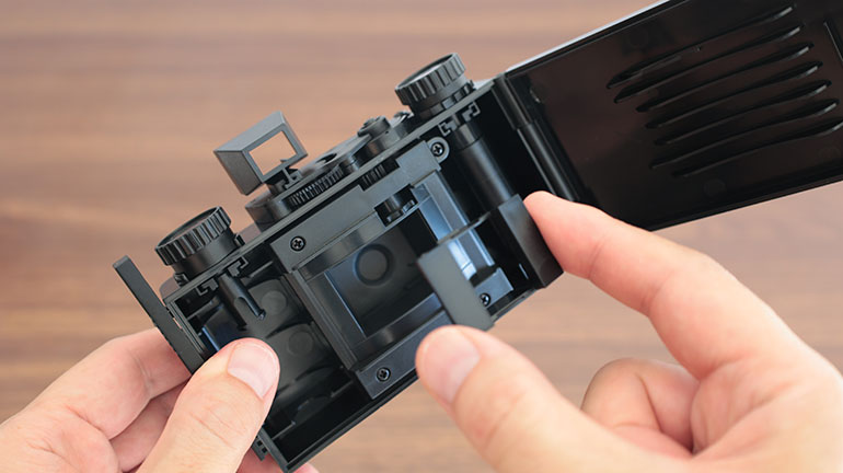 それでは、実際に使ってみよう。スマホカメラに慣れている方には、難しいと思われるかもしれないので、まずはフィルムを入れるところから。
