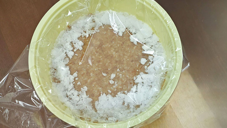 仕込みから約9か月から12か月で完成する。上部にカビがある場合は、取り除き、塩のカドがとれ、まろやかな味になっていたら完成だ。その後は、保存容器などに移し、冷蔵庫で保管する。
