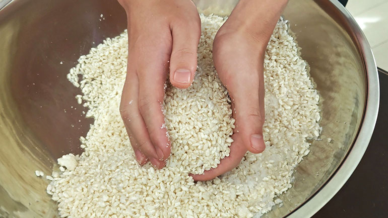 2.こうじと塩を合わせる(塩切り)