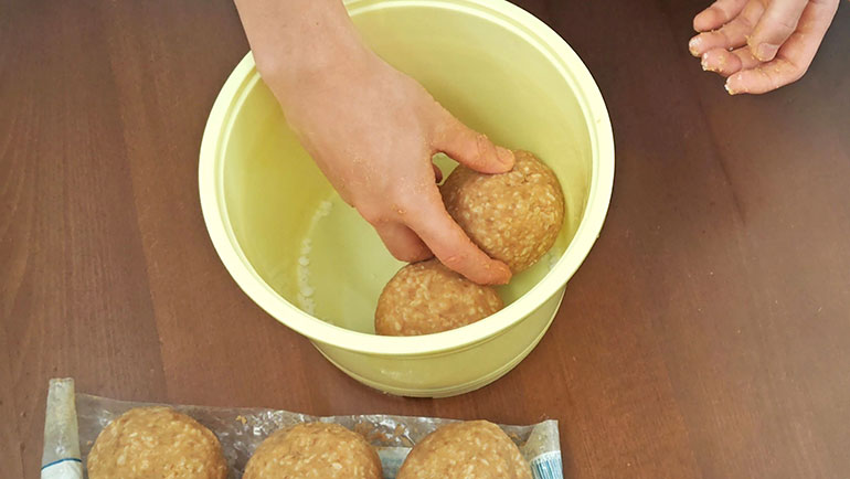 3を、野球のボールくらいの大きさに丸めていく。