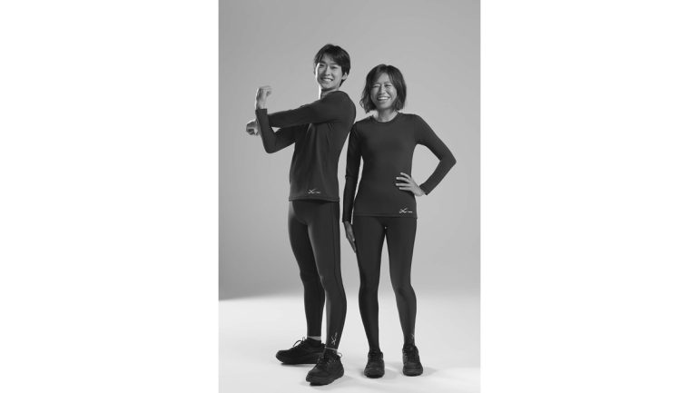 リカバリーウェアの魅力を伝えるビジュアルには、元陸上競技選手の福士加代子さんとNHK Eテレ『おかあさんといっしょ』の第12代体操のお兄さんとして活躍した福尾誠さんを起用。