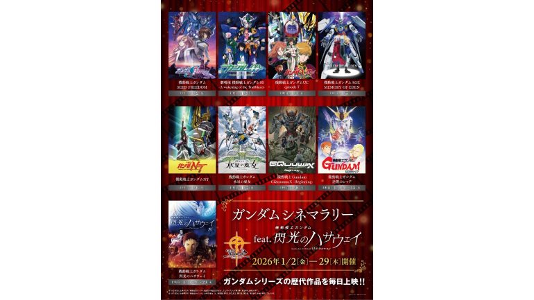 2026年1月30日の映画『機動戦士ガンダム 閃光のハサウェイ キルケーの魔女』公開に向けて、2026年1月2日からガンダムシリーズの歴代作品を毎日上映するイベント「ガンダムシネマラリー feat. 閃光のハサウェイ」が開催される。