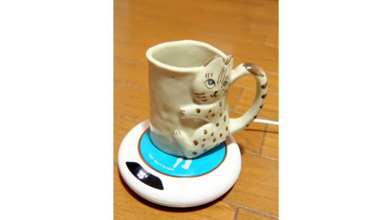 入手してすぐさま、コーヒーカップを載せた。いつも使ってるカップだったが、真空断熱カップだったので、カップウォーマーの効果は出なかった。