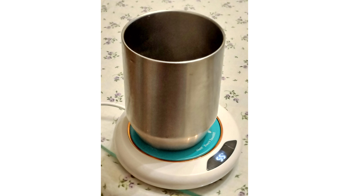 入手してすぐさま、コーヒーカップを載せた。いつも使ってるカップだったが、真空断熱カップだったので、カップウォーマーの効果は出なかった。