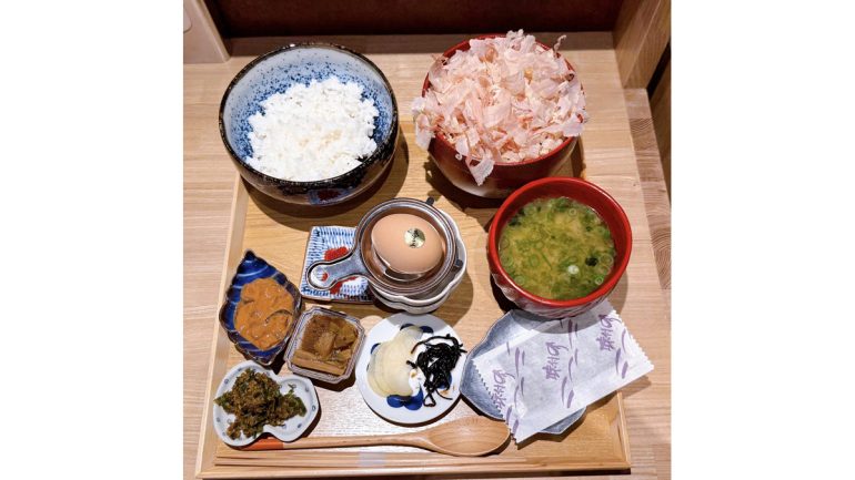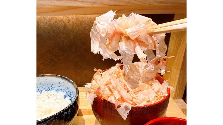 看板商品は、“日本の朝ごはん”を現代のライフスタイルに合わせて再構築した「生削り鰹節御膳」(1,600円)。目の前で削ったばかりの香り高いフレッシュな生削り鰹節をお椀に山盛りで提供する定食で、削りたて特有の香りは失われやすいため、賞味期限は10分程度だという。