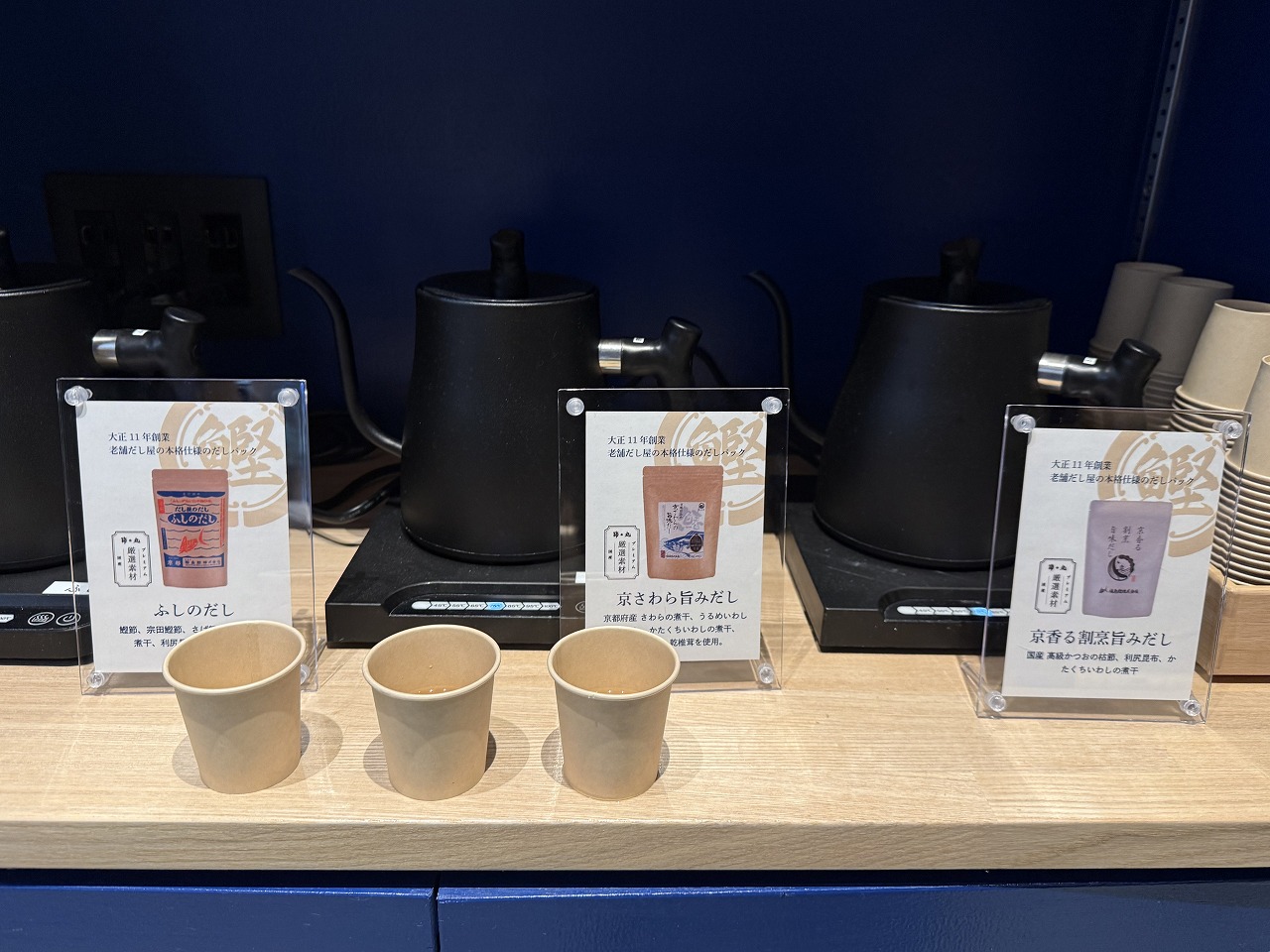 注目は、店内で3種類の出汁を無料でテイゥティングできること。つまり、朝食のご飯のお供を肴に、出汁をチェイサーとして「出汁飲み」ができるのだ。