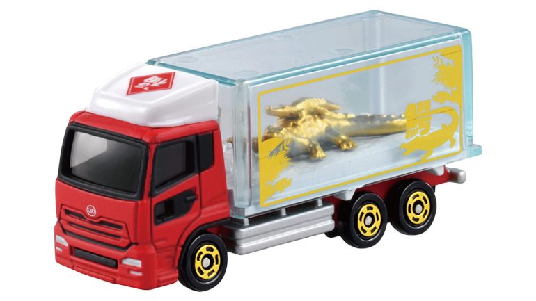 富の守り神と言われる幸運の金の鰐(わに)を乗せたトラックを表現。パネルにも金の鰐をデザイン。サイズ:幅25mm×高さ38mm×奥行き77.5mm。アクション:無。