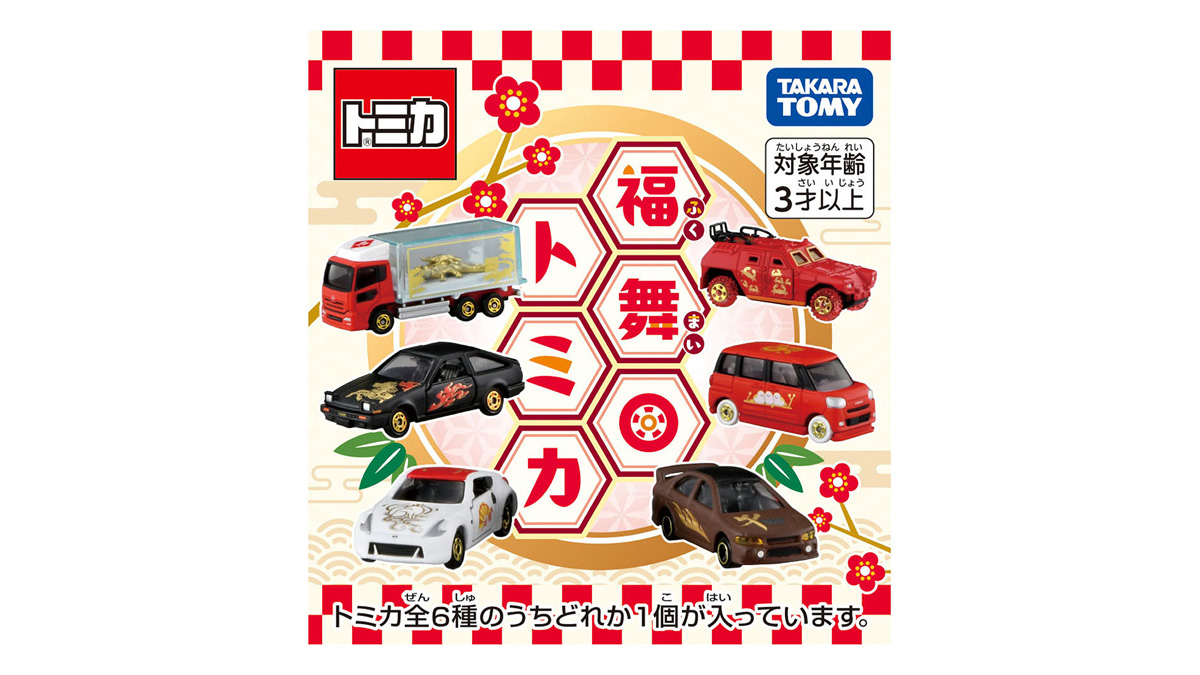 タカラトミーは、ダイキャスト製ミニカー「トミカ」の新商品として、新年を祝うくじ形式の『福舞トミカ』(全6種)を2025年12月27日から全国の玩具専門店、百貨店・量販店などの玩具売場、専門店「トミカ・プラレールショップ」、インターネットショップ、タカラトミー公式ショッピングサイト「タカラトミーモール」などで発売する。