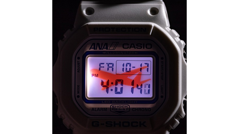 G-SHOCKを代表する『DW-5600』をベースに、オリジナル仕様として随所にANAらしさを組み込んだデザインが映える特別な1本だ。