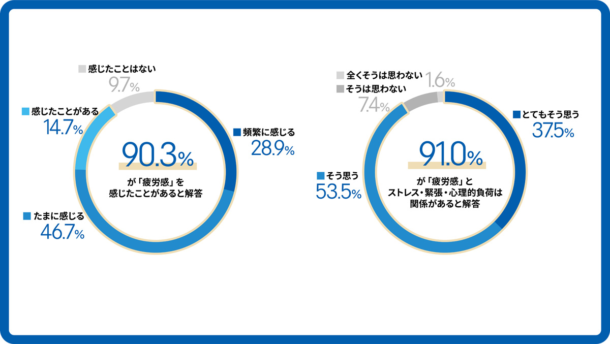 この結果から現代人の多くが感じている「疲労感」は、単なる身体的な消耗だけでなく、心理的負荷「精神的なストレスによる問題」に深く根ざしている可能性が高いことがわかった。この「疲労感」を解消するためには、心のケアという側面からのアプローチも重要であることがうかがえる。