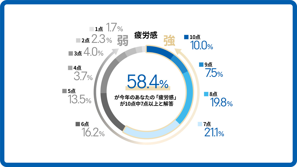 過半数の人が、今年の疲労感を「7点以上」と採点