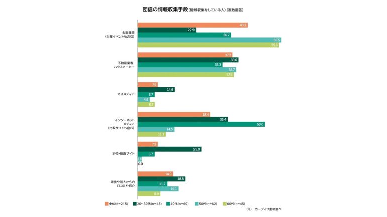 住宅ローン契約前に団信や特約について「情報収集・検討を行った」と回答した人は約5割(団信55%、特約51%)。うち、20~30代は情報収集に1か月以上かけた人の割合がともに67%と他の年代よりも高くなっている。