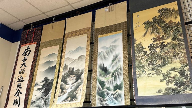 海外ではアメリカ、台湾、タイ、カンボジアに合計23店舗展開(2025年9月時点)。台湾には18年に進出し、現在では7店舗へ拡大。親日文化のある台湾では、意外なアイテムとして、掛け軸や花瓶、熊の木彫りなどの置物が人気。