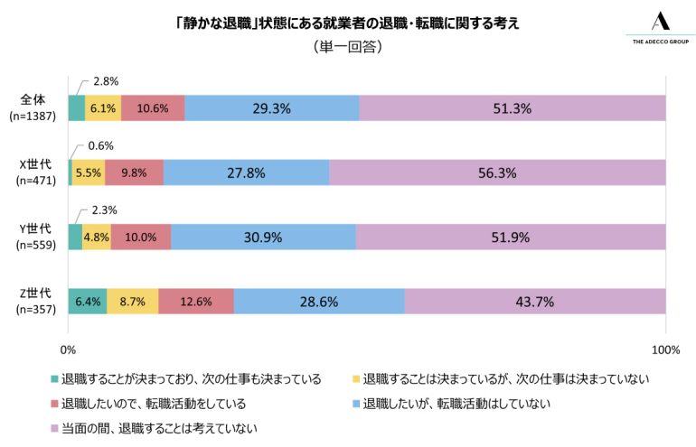 1. X・Y・Z世代の就業者の約7割が、「静かな退職」の状態にあることが明らかに/Z世代は7割以上が「静かな退職」状態に