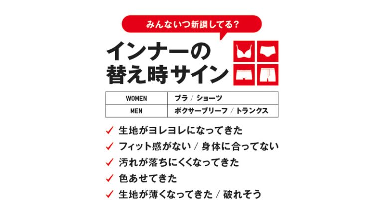 インナーは「買い替えタイミングが分かりにくいアイテム」の代表格。長年使い続けている人もいれば、季節ごとに入れ替える人もいるはずだ。