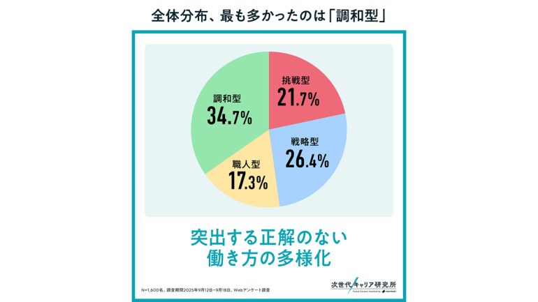 一方で、挑戦型や戦略型も一定数存在しており、同じZ世代の中でも働き方の基準が大きく異なる状況が可視化された。