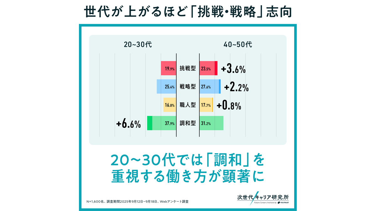 注目すべき点は、20~30代の若手層において「調和型」が最も多かった点だ。