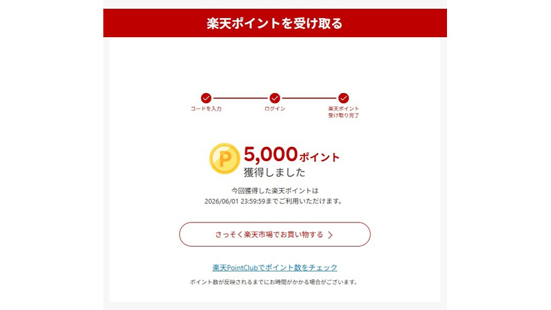 レントラックスでは100株で権利月3月と9月に5,000円相当のポイントがもらえ、年間では1万円相当。筆者は2025年9月権利分で5,000ポイントをもらい、楽天ポイントに交換した。