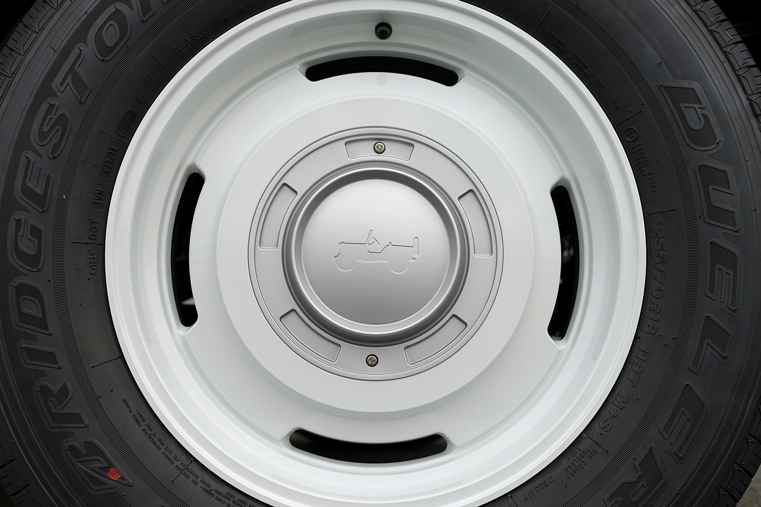 そして最大の特長は、印象の異なる2通りのスタイルを楽しむことができる2-Wayホイール。ホイールデザインのひとつは、Willys MBのスピリットを受け継ぐコンセプトカー「Willys ’41(ウィリス フォーティーワン)」から着想を得たクラシカルな佇まい。一方、シルバーの大型キャップを装着すると、力強い存在感を放つ。いずれのセンターキャップにも、Willys MBのシルエットが刻印されている。
