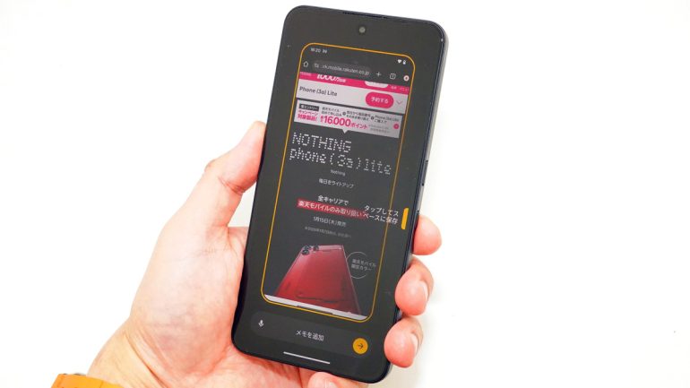 同社は、サブブランドとして「CMF」を展開しており、そちらではエントリーモデルを投入していたが、メインブランドのNothingとしては初めての試み。価格は、同社直販で4万円台前半、楽天モバイル経由で購入すると3万円台前半まで下がり、気軽に購入することができる。