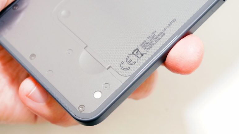 背面を見ると分かるように、カメラのフラッシュに使うLEDとは別に、本体下部にもう1つのLEDが搭載されており、ここが光ることによって通知や着信をお知らせする。ディスプレイを下にして机やテーブルに置いた際に、新着があることをさりげなく伝える手段は残されているというわけだ。LEDライトであれば、カメラのそれと統合してもいいのではと思うところはあるものの、こうした細かな工夫で“Nothingらしさ”が出ている印象を受けた。